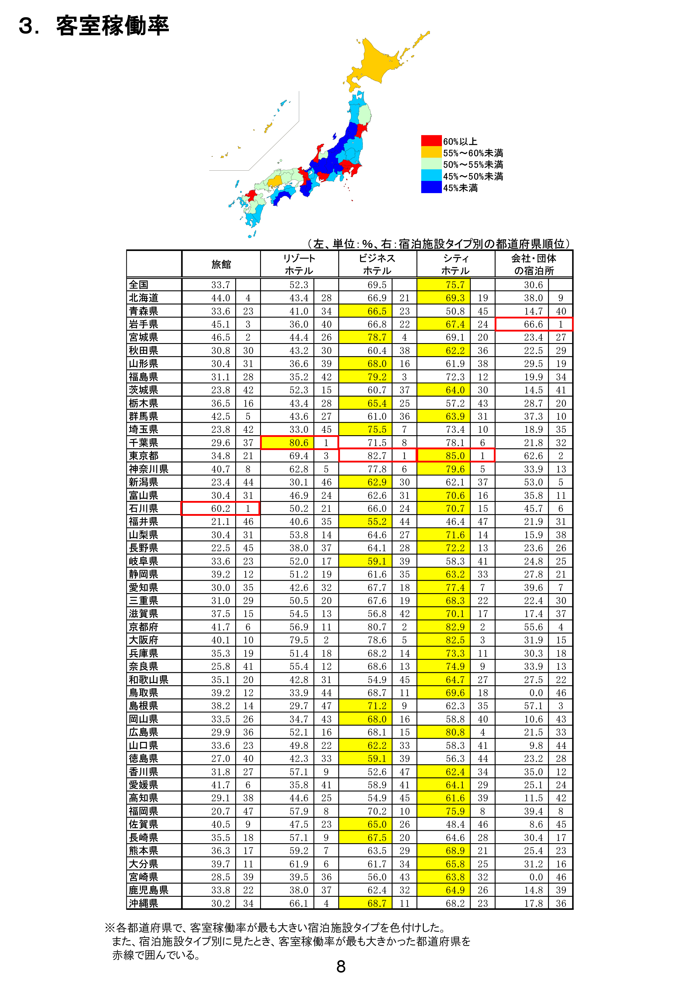 客室ゲストハウスは旅館に当たるので、旅館で見ると