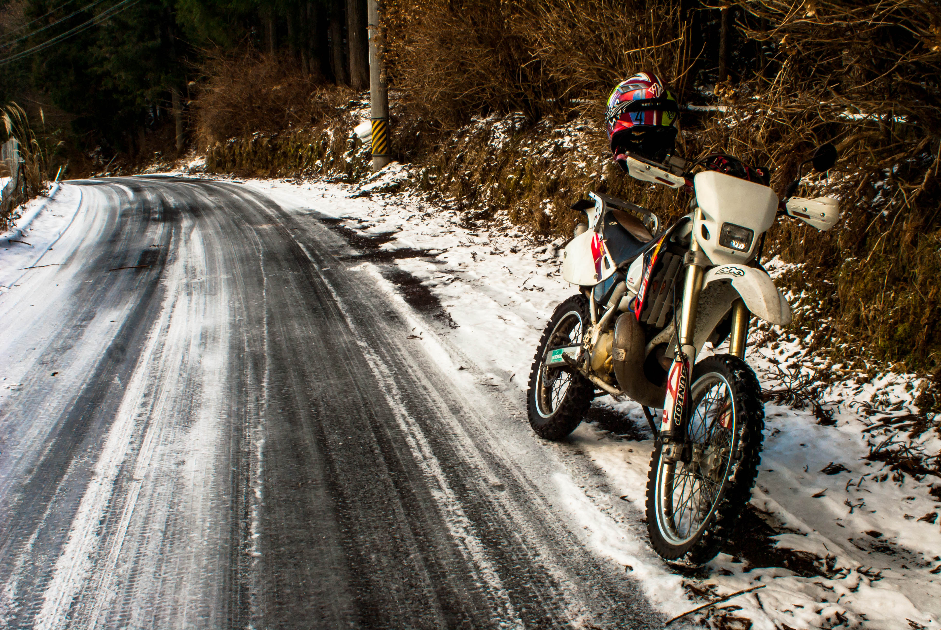 流石にアイスバーンと化したアスファルトは二輪車にとってデスマーチです。