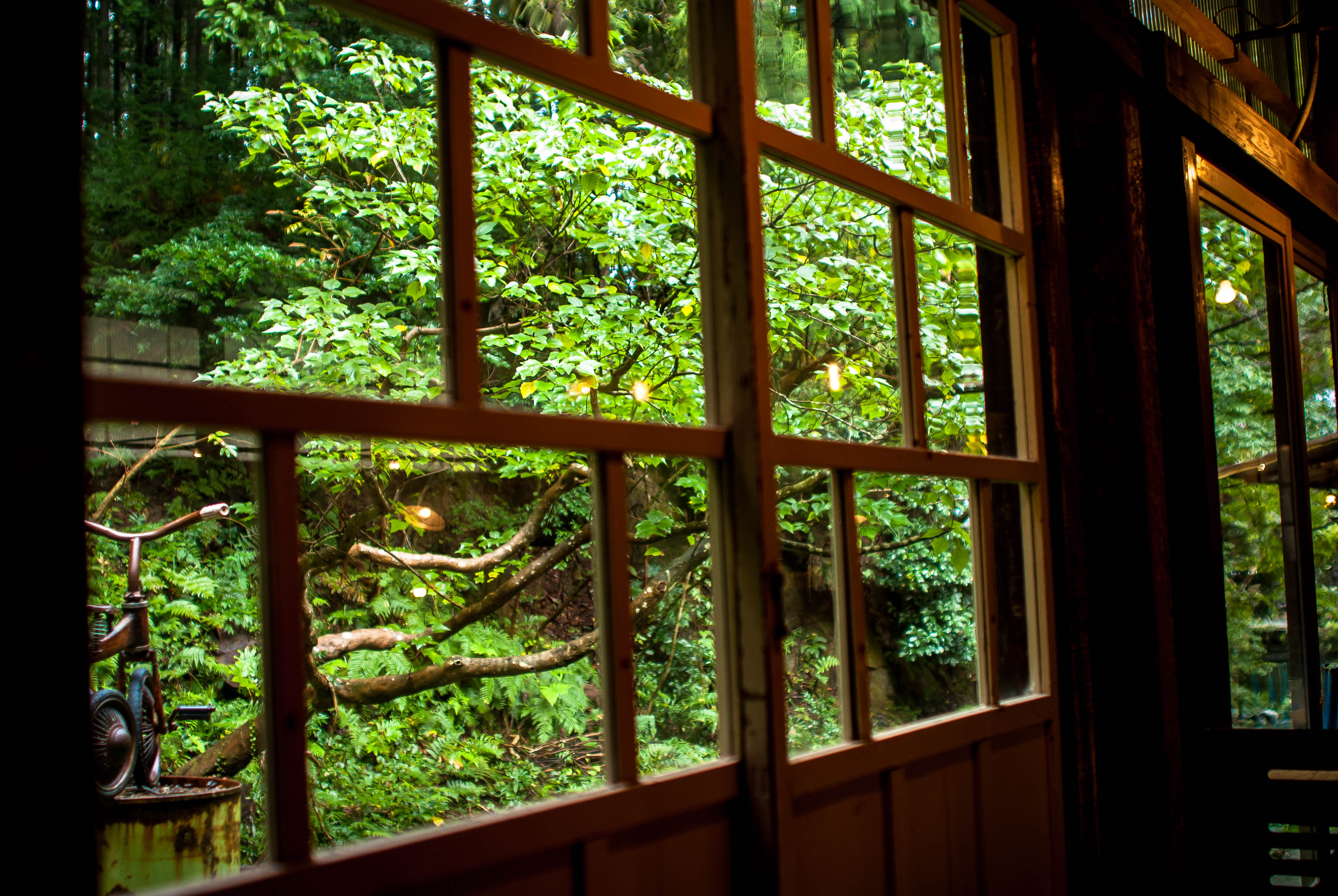 インダストリアルな内装空間の外は