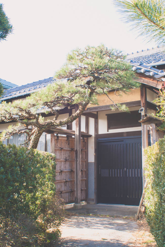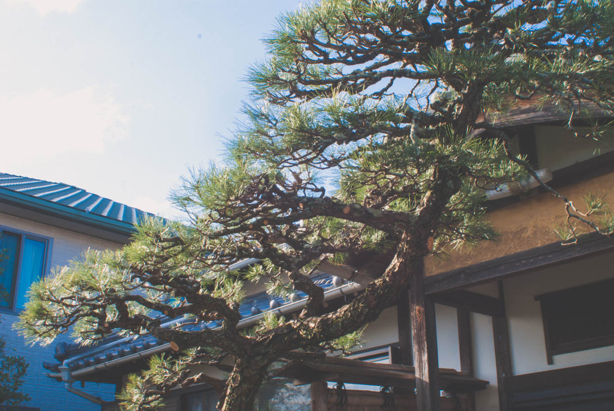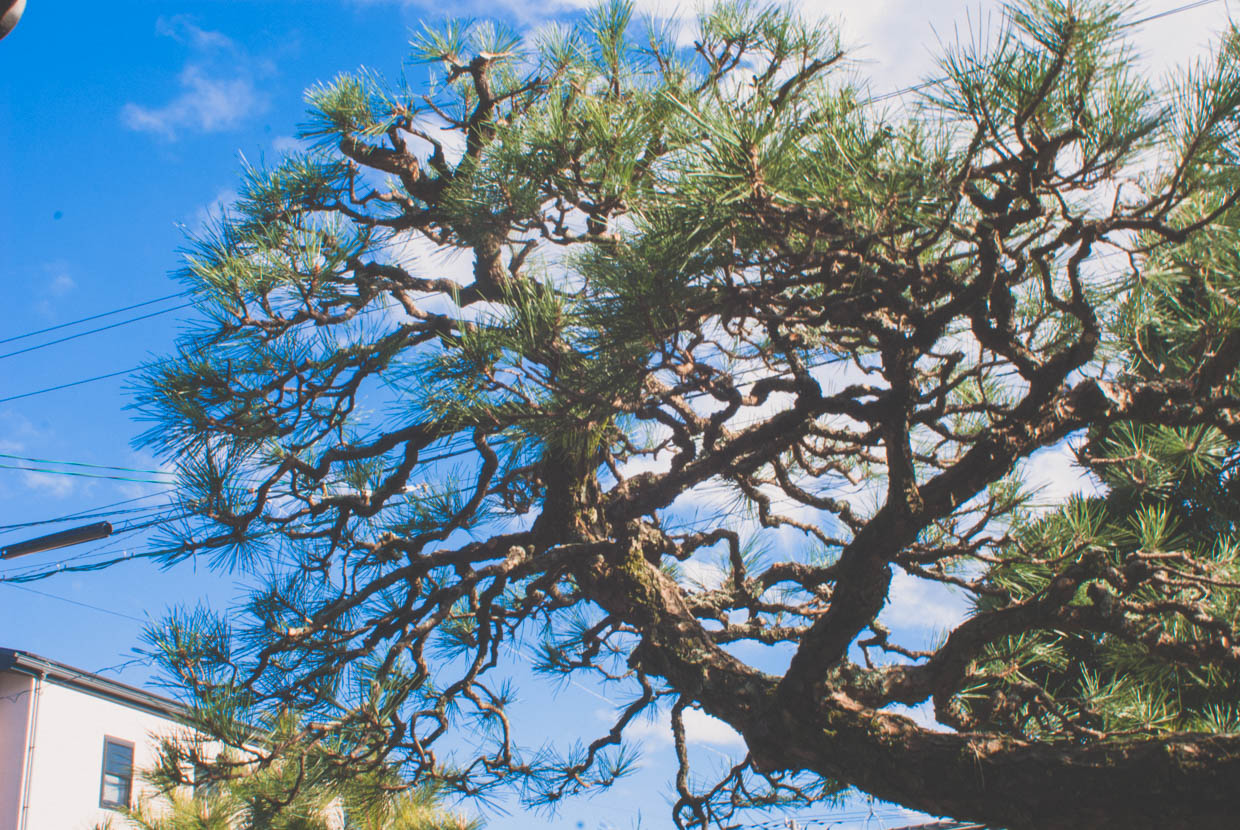 ゲストハウス白昼夢の庭に生えている松の木は